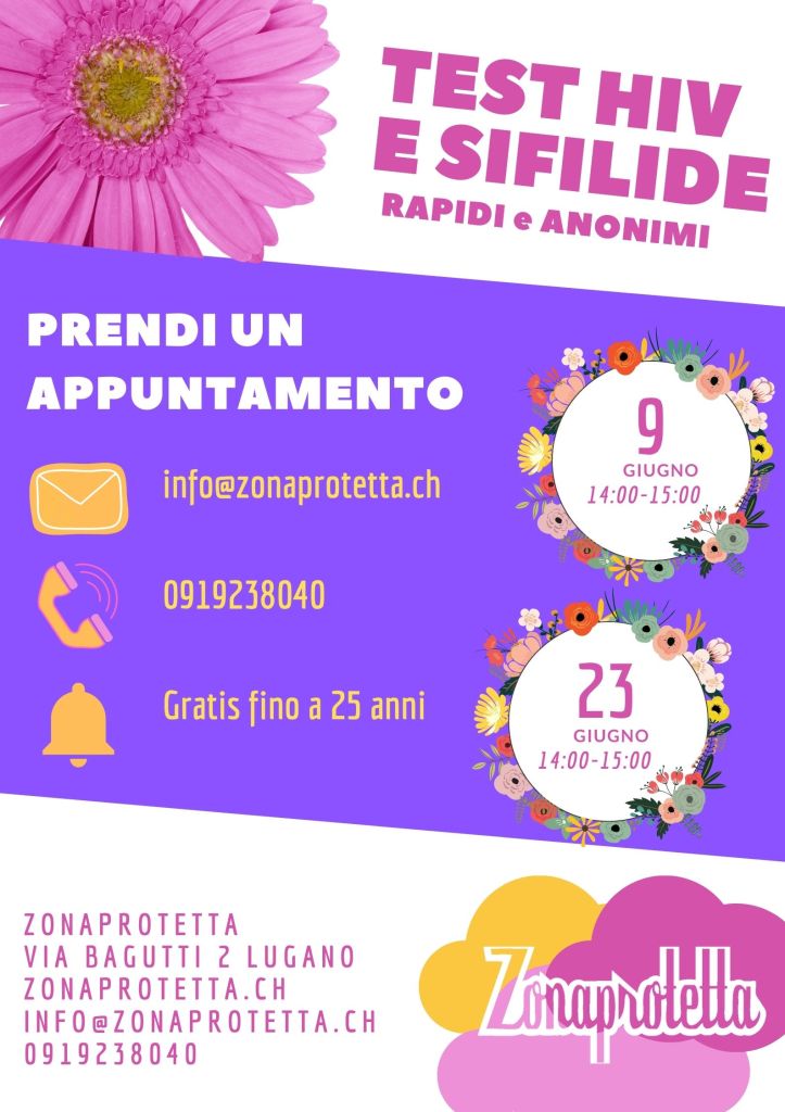 Fai il test HIV e SIFILIDE, prendi appuntamento a Zonaprotetta: 0919238040 e gayticino@zonaprotetta.ch