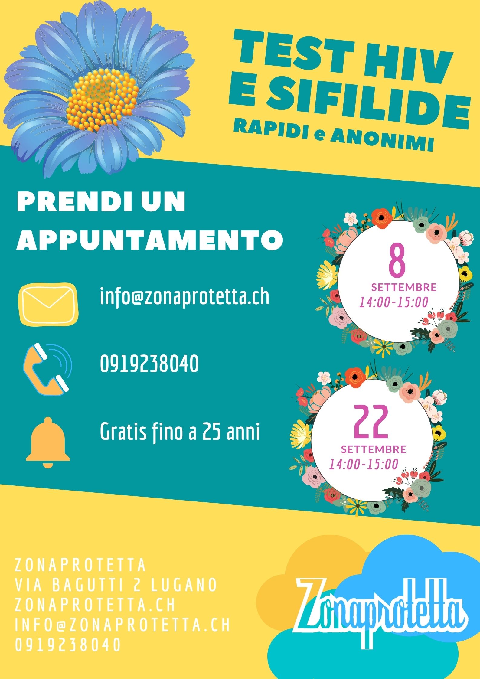 Fai il test HIV e SIFILIDE, prendi appuntamento a Zonaprotetta: 0919238040 e gayticino@zonaprotetta.ch