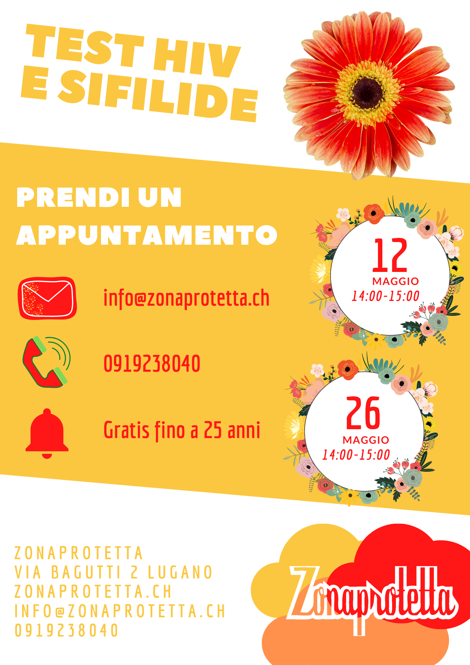 Fai il test HIV e SIFILIDE, prendi appuntamento a Zonaprotetta: 0919238040 e gayticino@zonaprotetta.ch